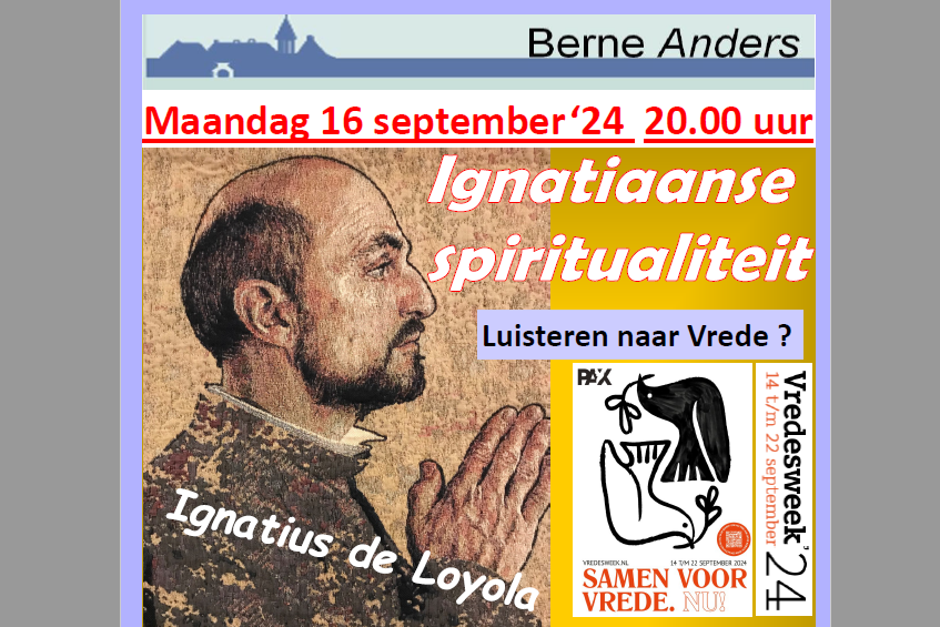 De Vlaamse jezuïet Nikolaas Sintobin sj. spreekt op maandagavond 16 september in de Abdij van Berne over de Ignatiaanse spiritualiteit. Bewust luisteren naar de gedachten en gevoelens in ons hart is een wezenlijk onderdeel van de Ignatiaanse spiritualiteit. Ignatius van Loyola ( 1491 – 1556) wordt gezien als dé specialist in het leren maken van onderscheid in het gewone leven. Hoe ga ik als mens om met gevoelens en gedachten van goed en kwaad? Als gewonde ridder merkte Ignatius van Loyola dat de vrede in het hart daarbij een bijzondere rol speelt.