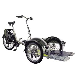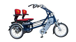 Een van de duofietsen is een rolstoelfiets , waarmee deelnemers in de rolstoel met een vrijwilliger kunnen gaan fietsen.