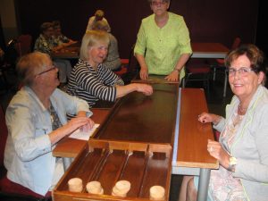Tijdens het sjoelen wordt er gepraat, gelachen en wat belangrijk is: naar elkaar geluisterd.